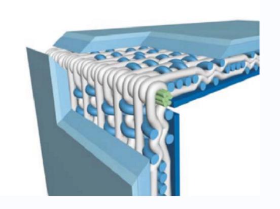 In the process of base mesh weaving and heat setting, it is necessary to ensure flatness of the surface and seam joint, especially to ensure that the weft yarn at the seam joint does not appear bending and inclination